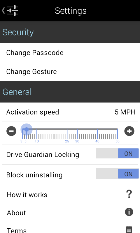 Parents, Guardians or Employers can install and activate DriveGuardian. When the app senses motion, it temporarily limits phone functionality to calling up to 4 contacts & 911.